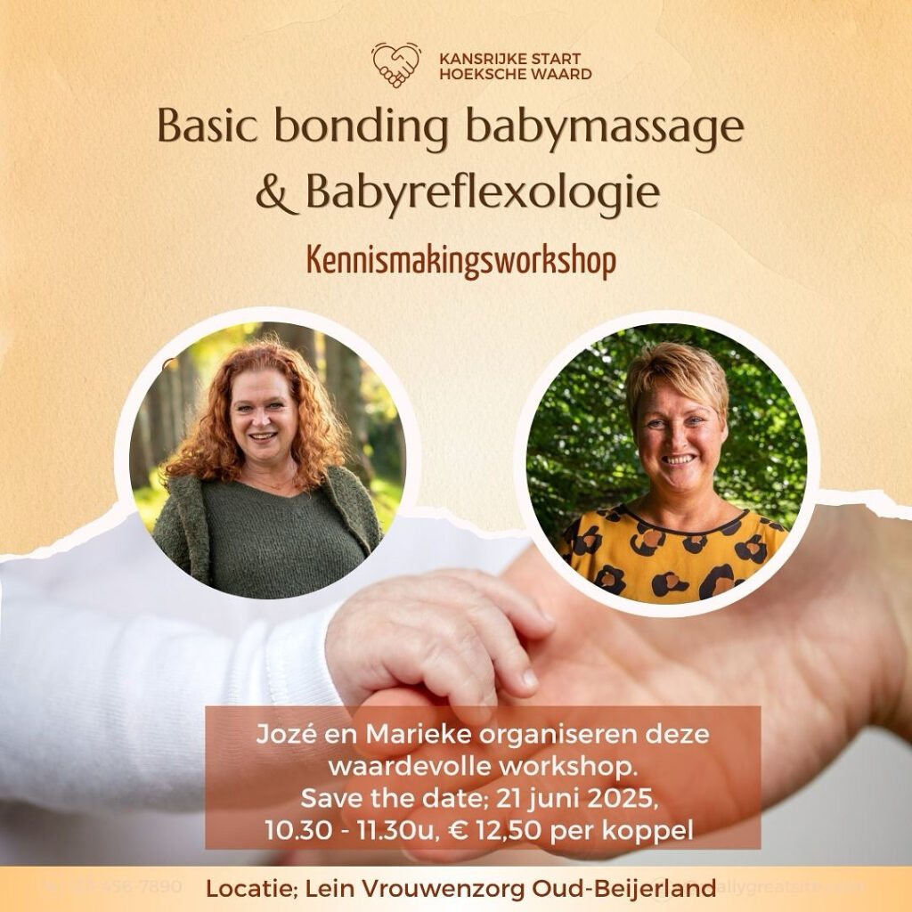 In deze unieke workshop nemen Jozé en Marieke je mee in twee vormen van aanraking die niet alleen je baby ondersteunen, maar ook jou als ouder rust, vertrouwen en verbinding geven.